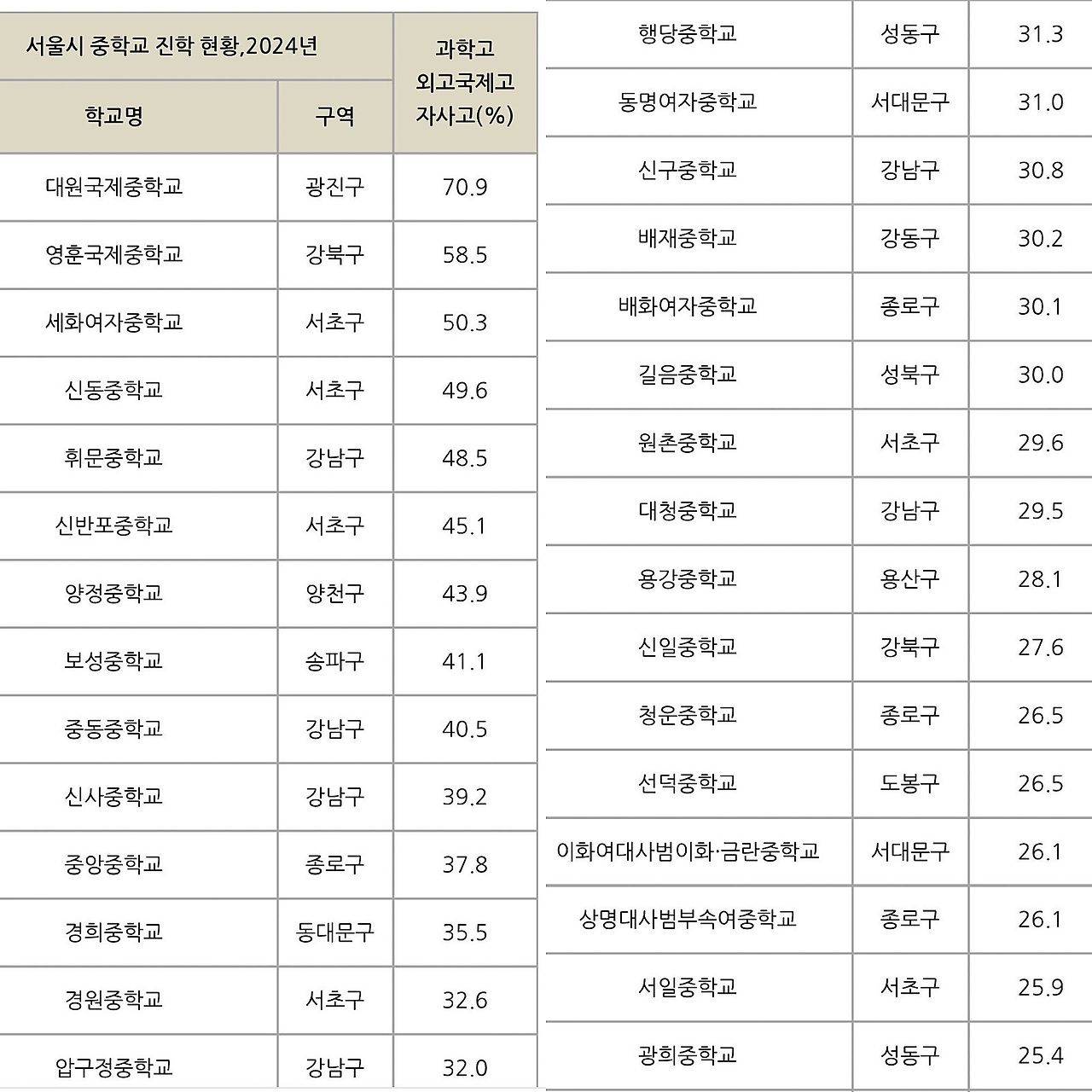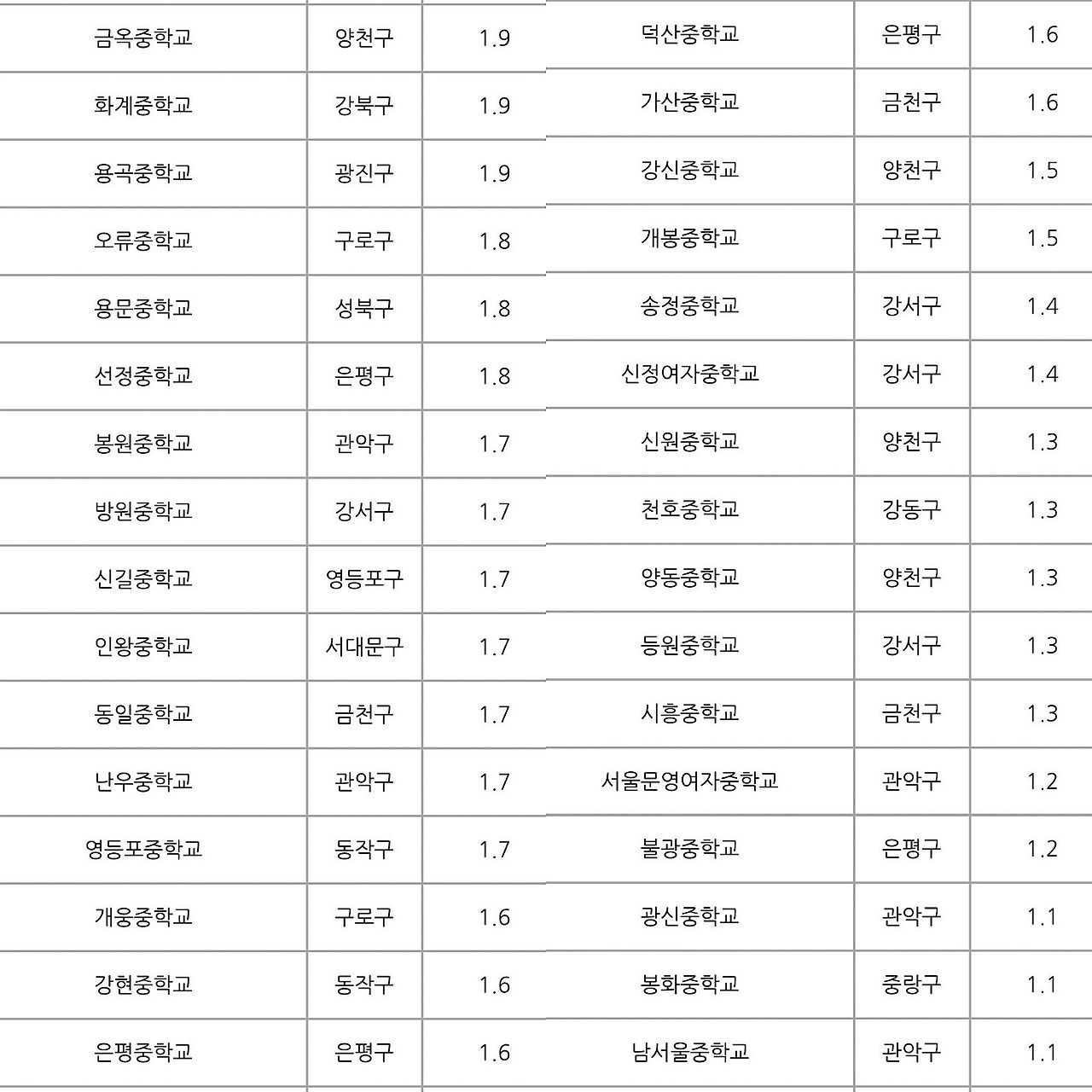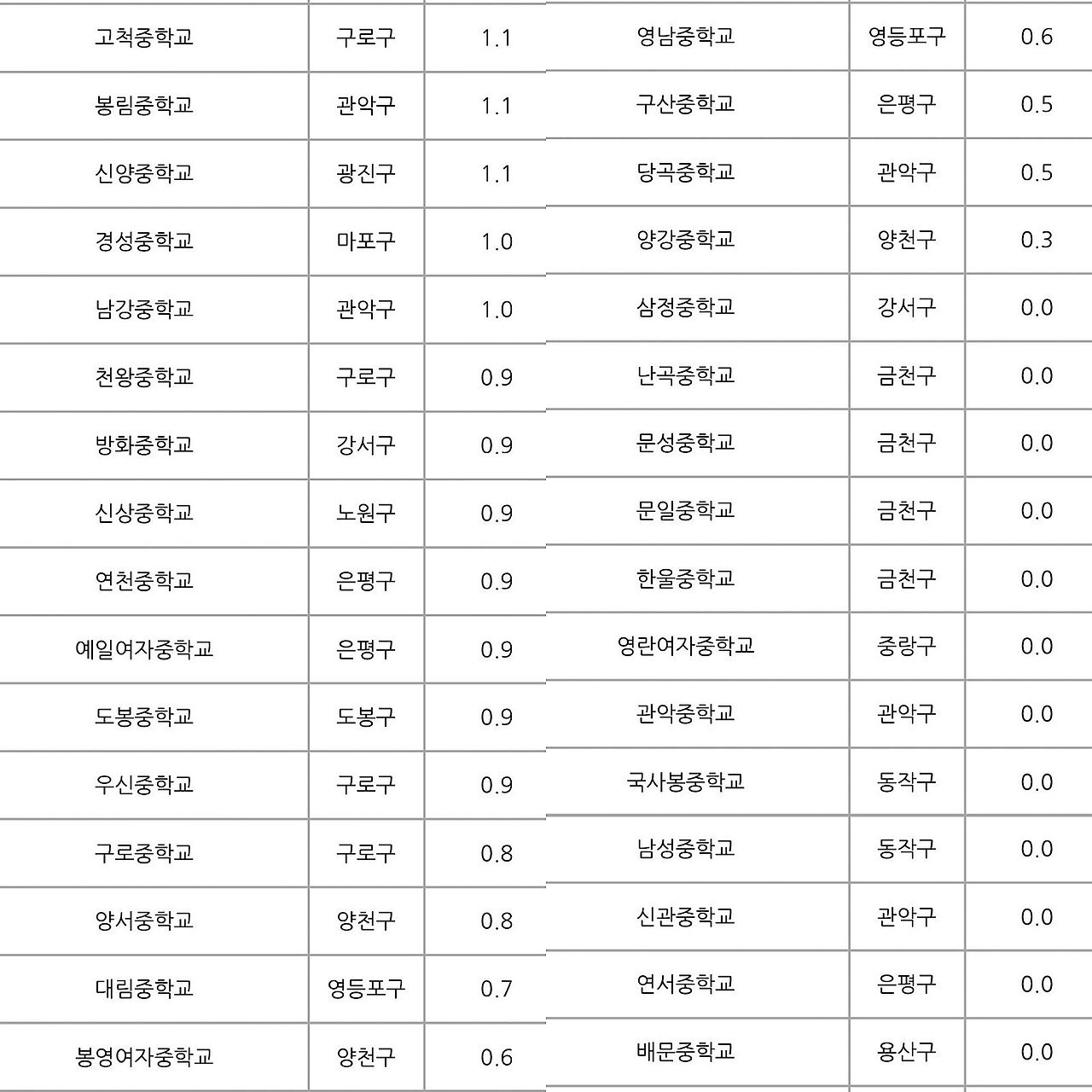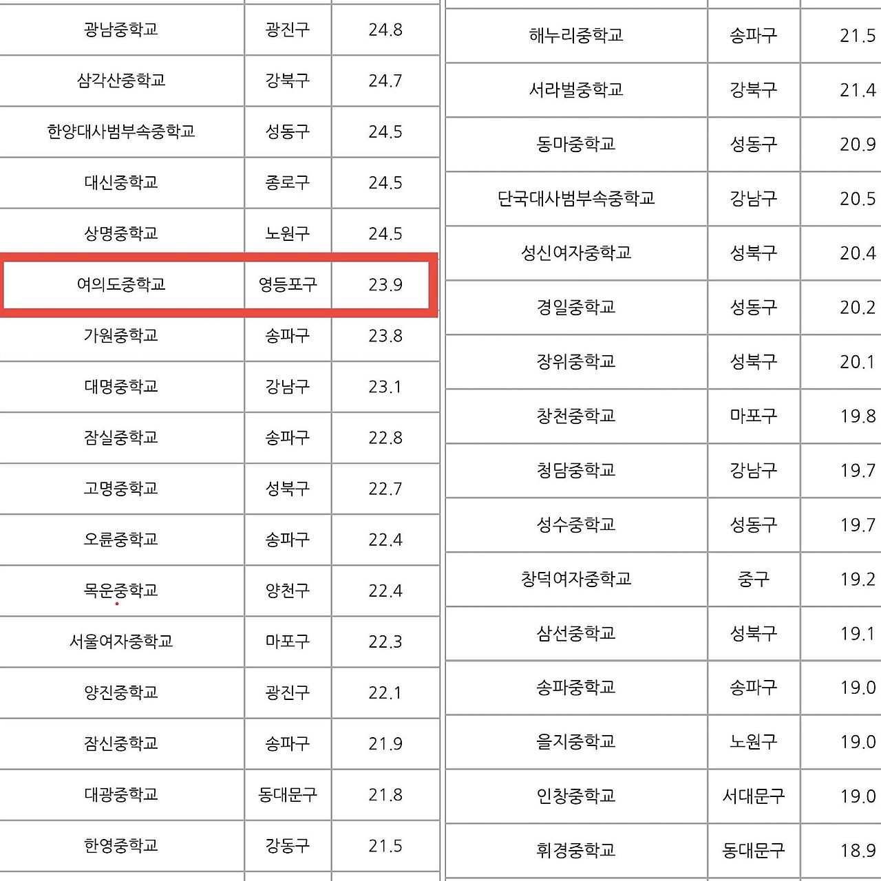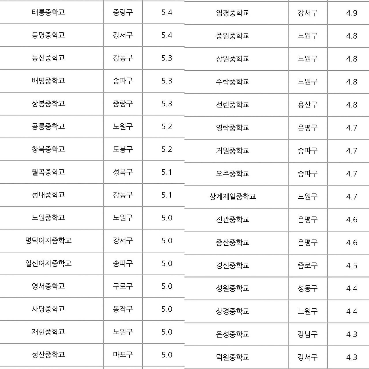 서초구 반포가 일대가 압도적으로 진학률 좋고 그다음 학군 좋기로 유명한 중학교 압구정 중이나 서일중 등등이고